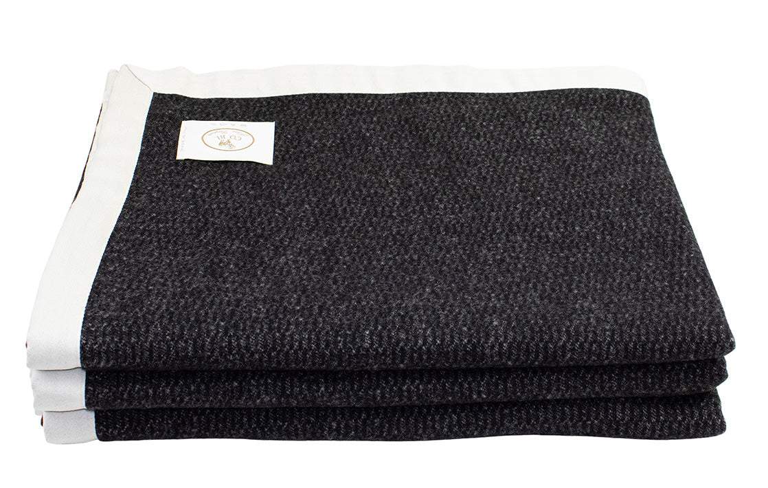 Cashmere and wool blanket in dark anthracite melange with light workmanship in ivory colour