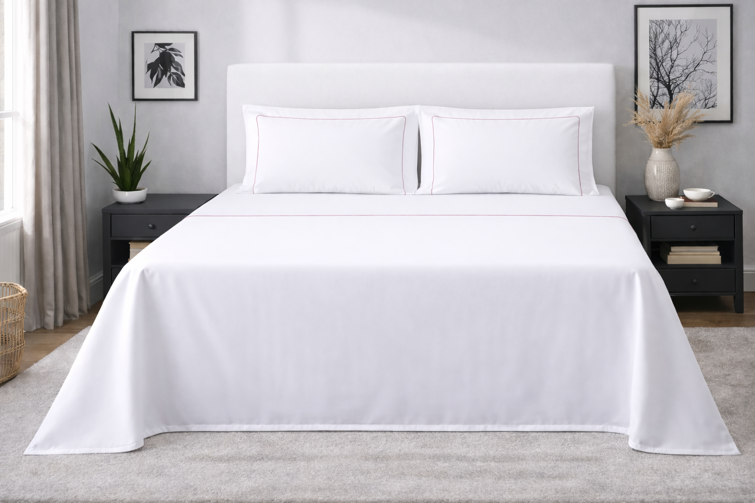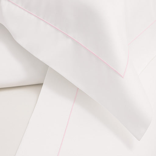 Complete Sheet Set in Pure Percale Cotton with colored cordonet and pillowcases finished with 3 Ruffles