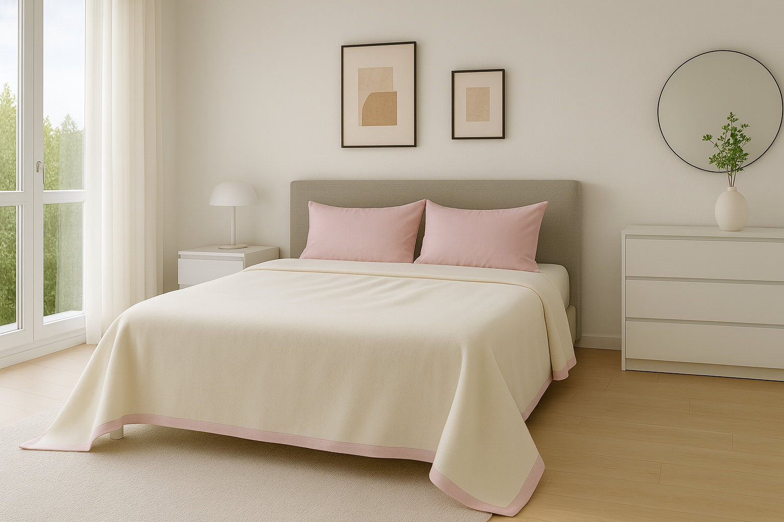 Coperta Invernale Pura Lana Norvegese con bordo rosa