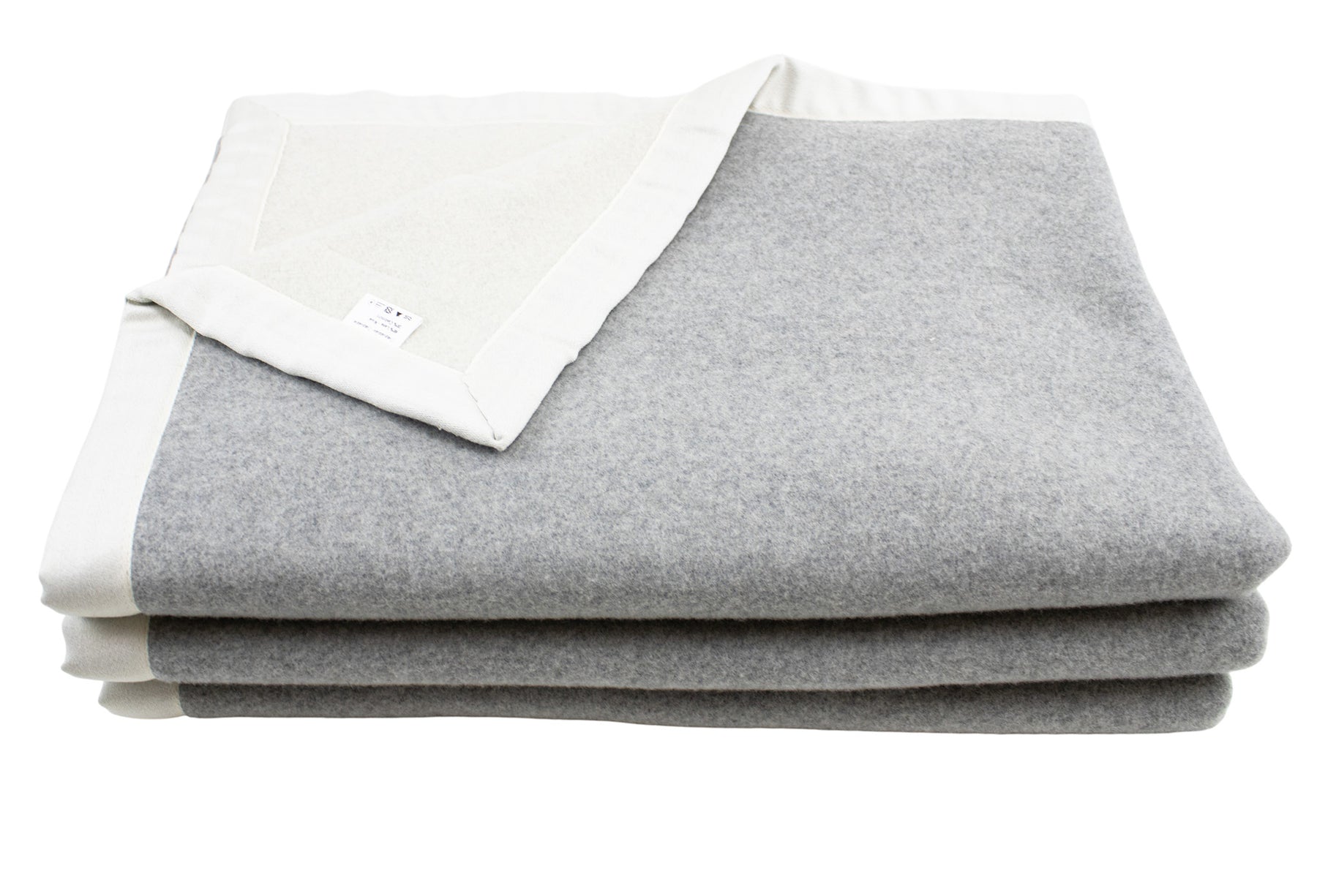 Particolare coperta grigia e bianca di lana merino