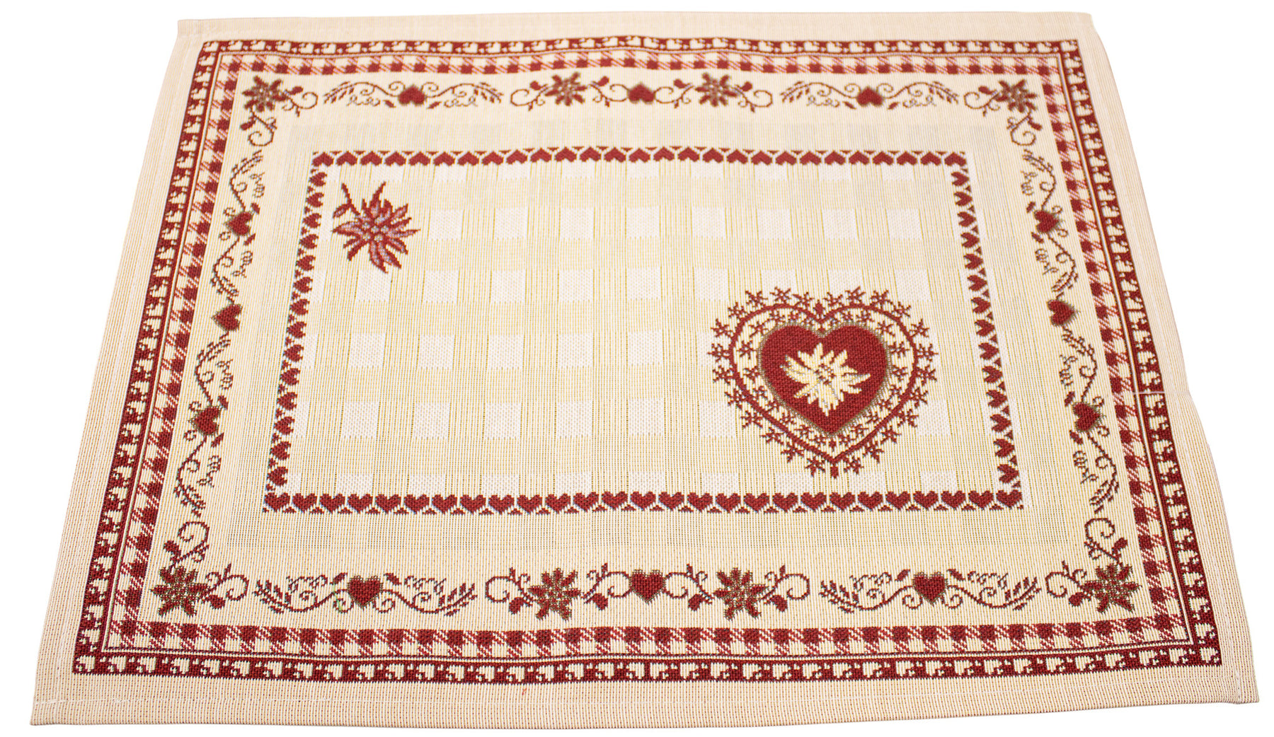 Fantastic Christmas gift idea to pamper yourself at breakfast during the Christmas holidays: Shabby Chic style Christmas placemat with refined Country hearts on a Christmas theme.