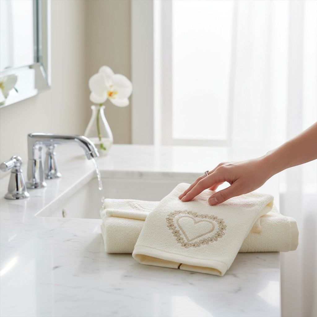 Bath Towels with Heart Applied in Ruffle DOROTEA