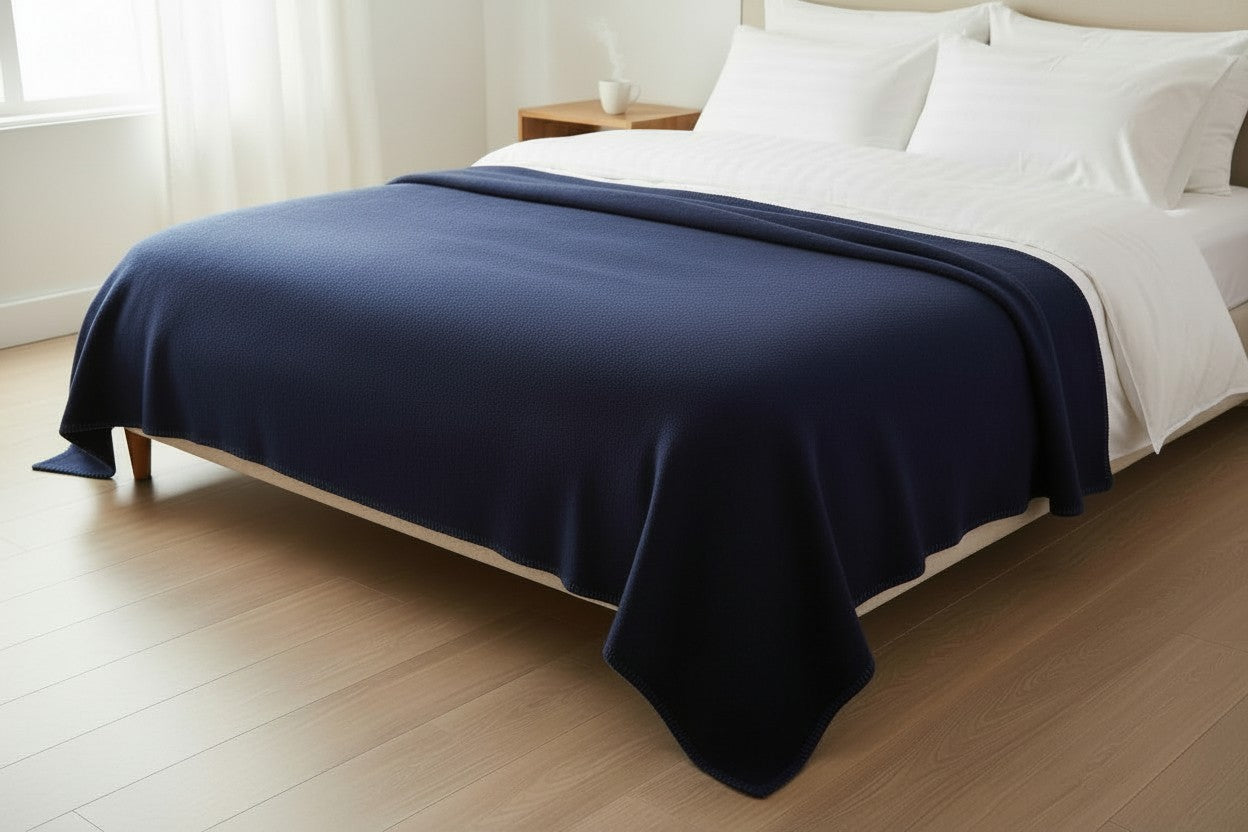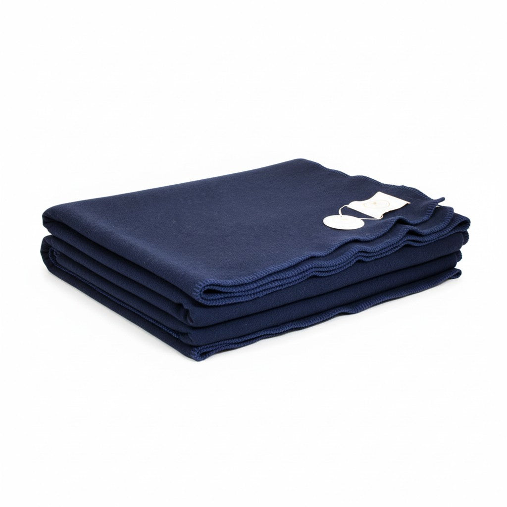 Offerta speciale! Coperta pesante in pura Lana di colore blu scuro rifinita a Punto cavallo Blu