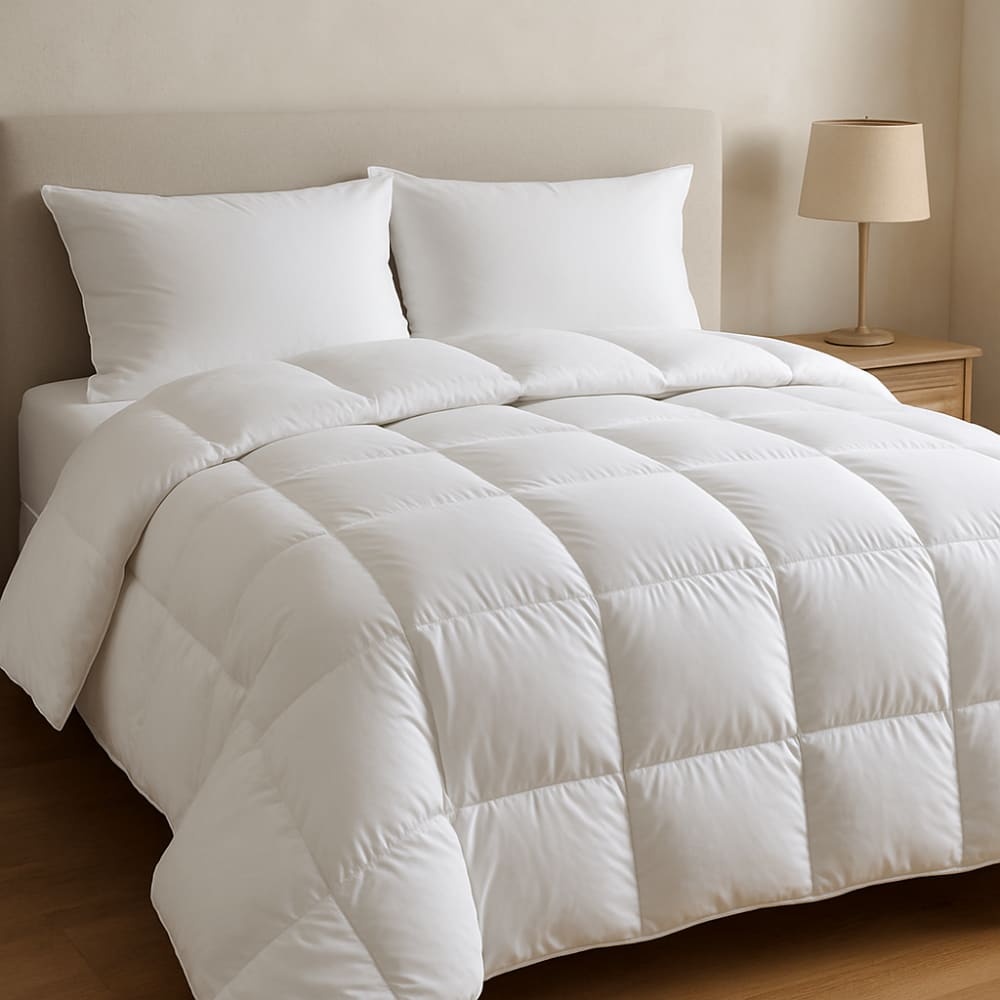 Piumone Trapuntato: i nostri piumoni sono trapuntati con linee che attraversano tutto il tessuto, creando delle piccole celle o linee di cucitura. Questo metodo permette al piumino di distribuirsi uniformemente e di mantenere la sua forma nel tempo.