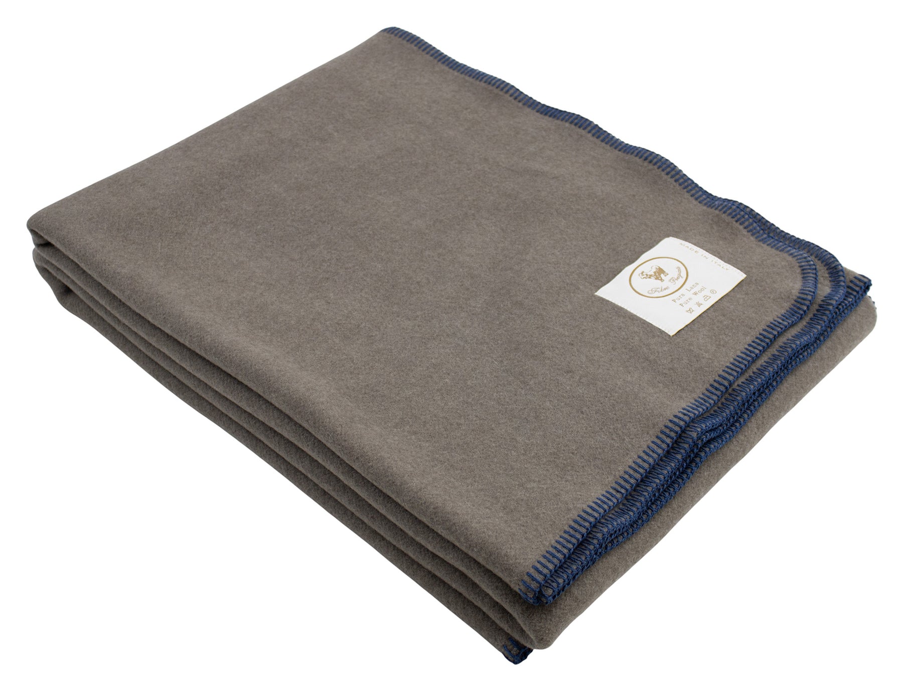 Plaid di pura lana extralarge color fumo e bordo blu