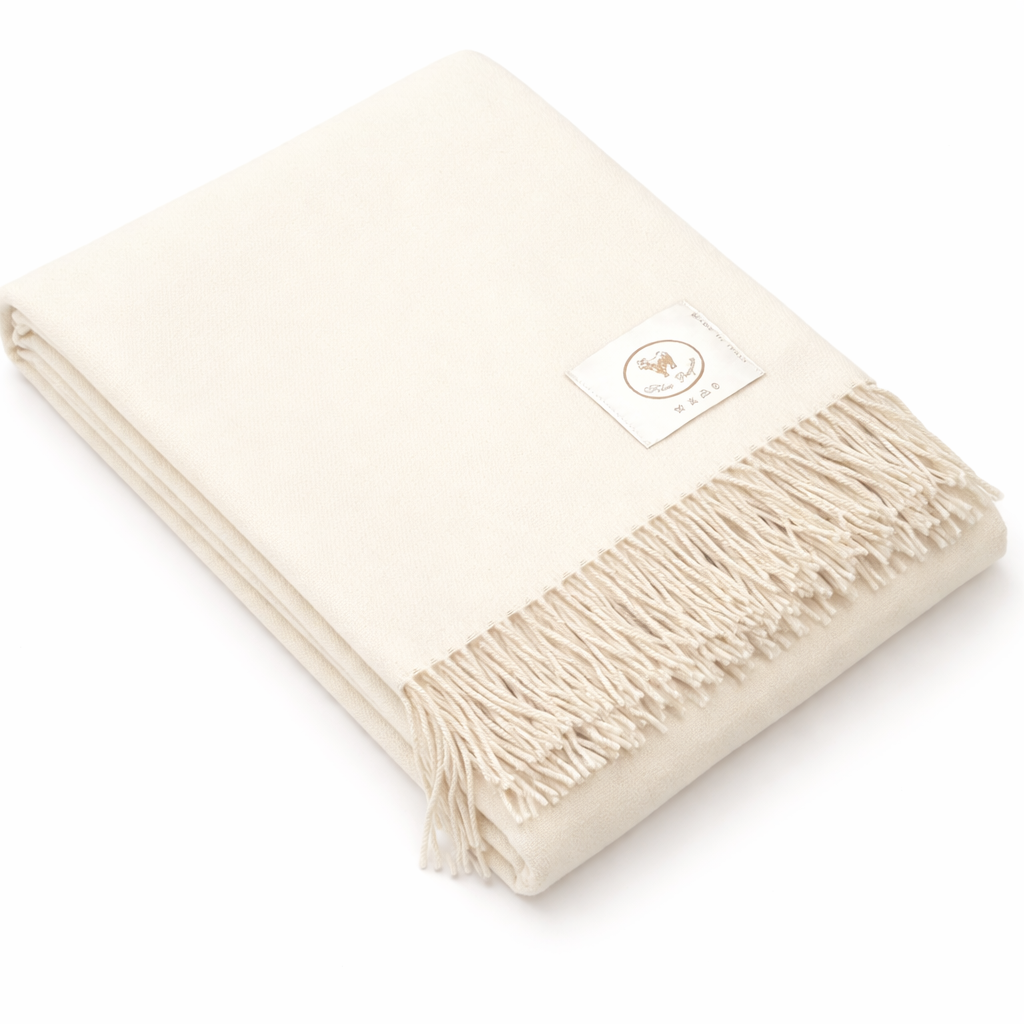 Plaid in puro Cashmere e Seta, molto fine, elegante, caldo e soffice grazie al connubio tra Cashmere e Seta