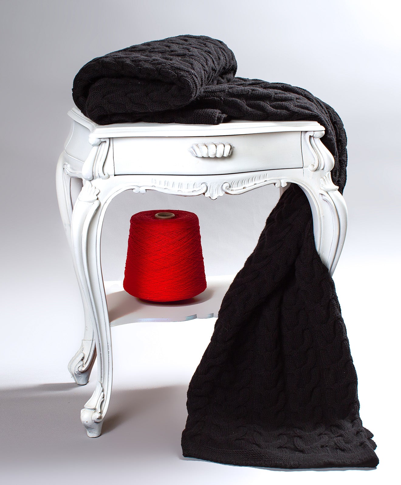 Plaid in Puro Cashmere extrafine, lavorato a maglia a treccia aperta