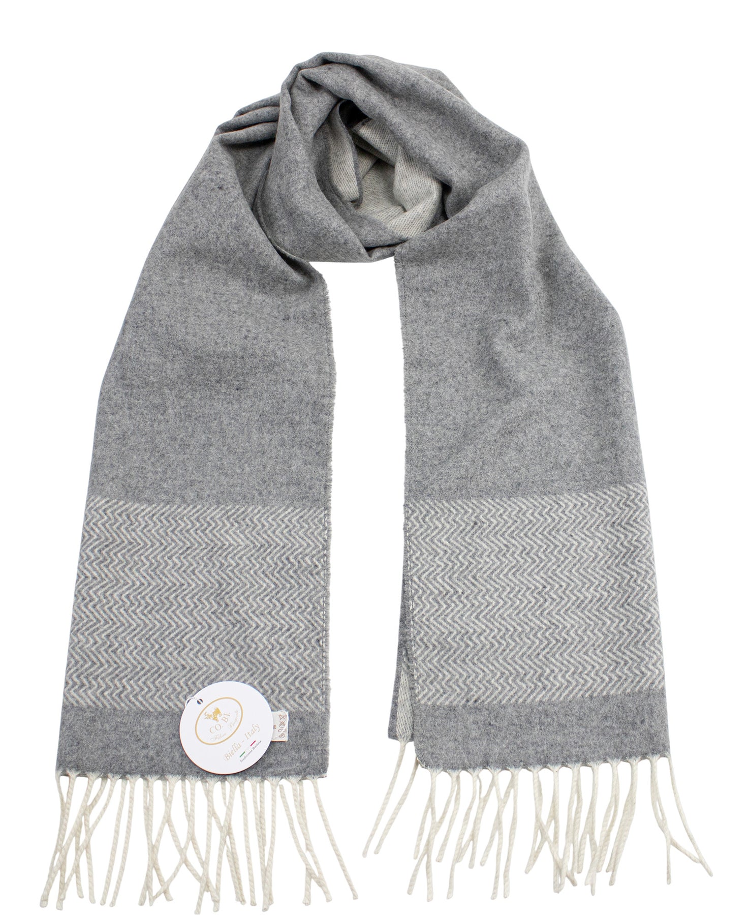 Sciarpa frangiata in Puro Cashmere con finissimo motivo a Chevron