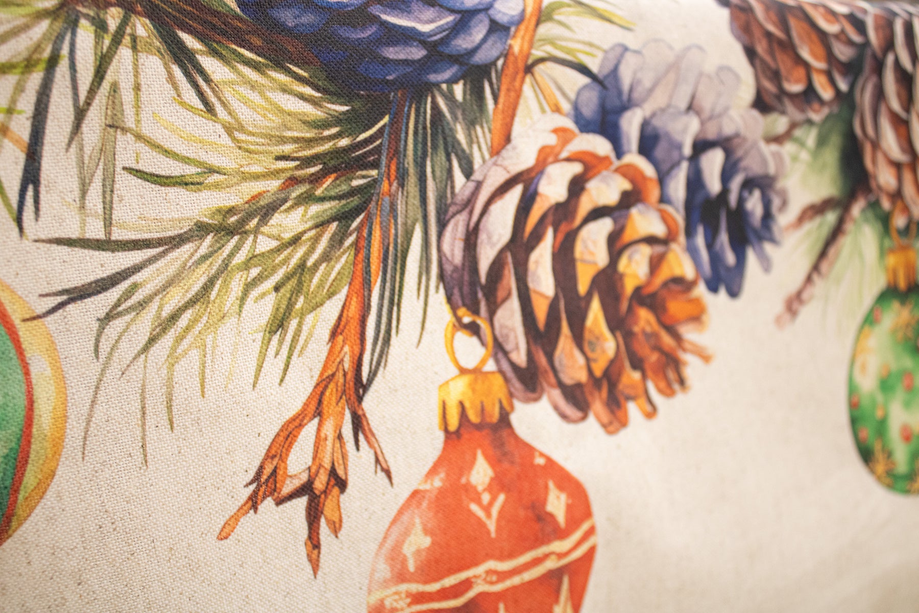Tovaglia Natalizia con stampe a tema Natalizio con Pigne, abeti, Fiocchetti, Vischio